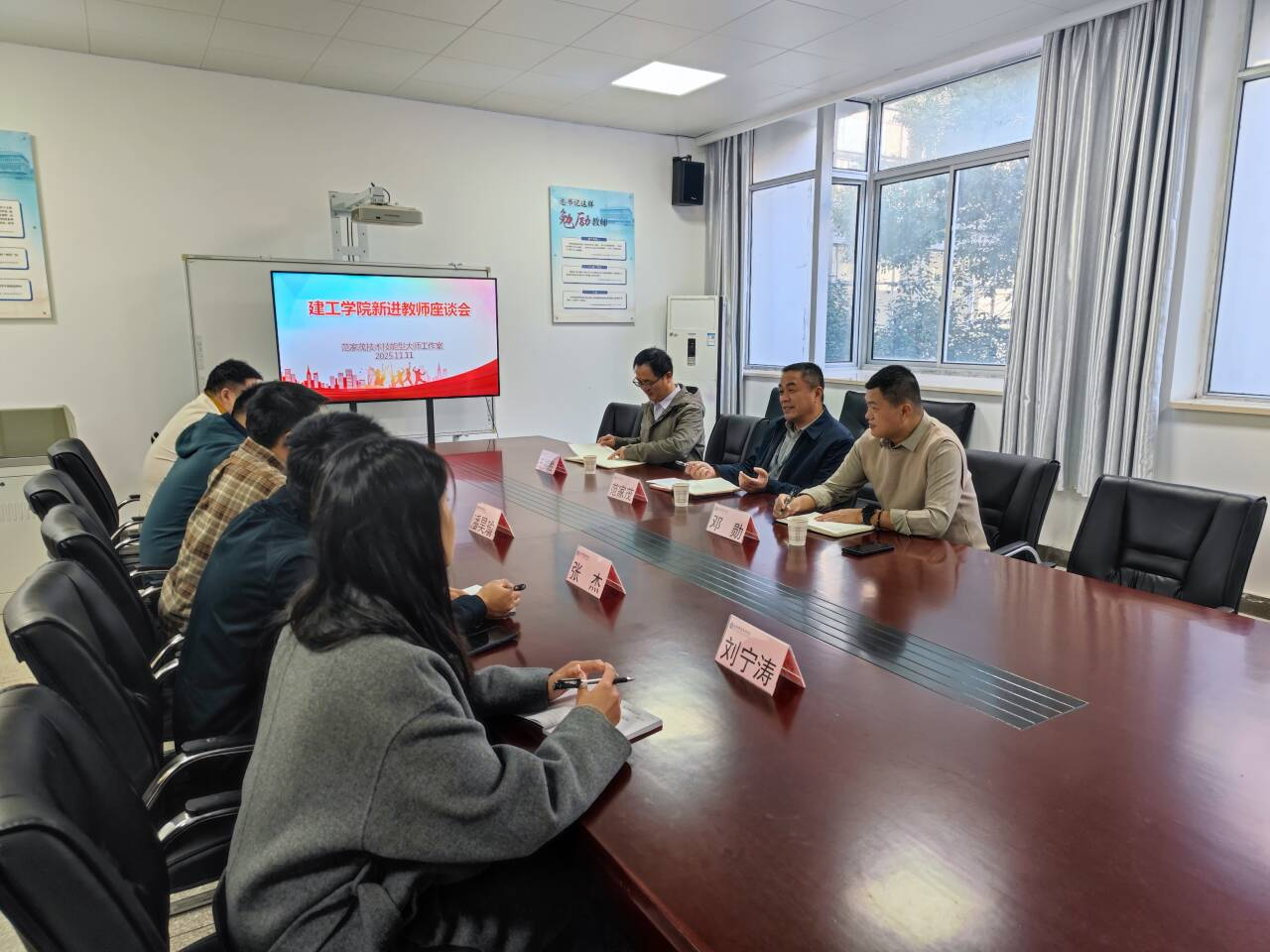 为传承优良教风,助力新进教师快速成长,11月11日下午,我校“范家茂技术技能型大师工作室”负责人、校党委委员、副校长范家茂教授,与建筑工程学院5位新进教师开展了一场主题为“引领与分享”的座谈会。学院副院长邓勋、工作室成员王福胜参加了座谈会。