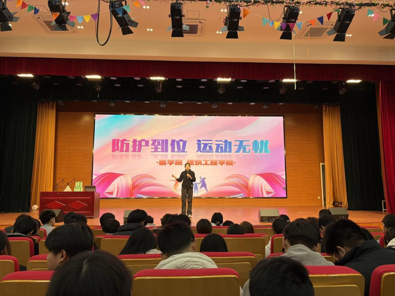 邓勋首先表示,“让安全防护知识成为工科青年的隐形安全帽,正是本次联建的初心,安全是共通的生命底线”。 主题讲授环节,康复专业骨干教师刘启以“运动损伤的可防与可控”为主线,用高校近三年案例大数据作为切入点,着重强调“充分热身、正确发力、合理恢复”是避免运动损伤的三大核心要素,并提醒同学们把工地安全习惯迁移到运动场景,实现“专业—生活”双向赋能。