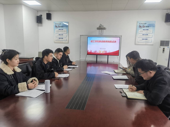 12月20日下午,建筑工程学院在建工楼213会议室成功举行了2025年新进教师岗前培训试讲。本次活动旨在检验新进教师的教学基本功,帮助其快速适应教学岗位,提升教育教学能力。该院副院长邓勋、党总支副书记施芳芳、副院长胡秀俊共同担任评委,对五位新进教师的试讲进行了现场评审与指导。