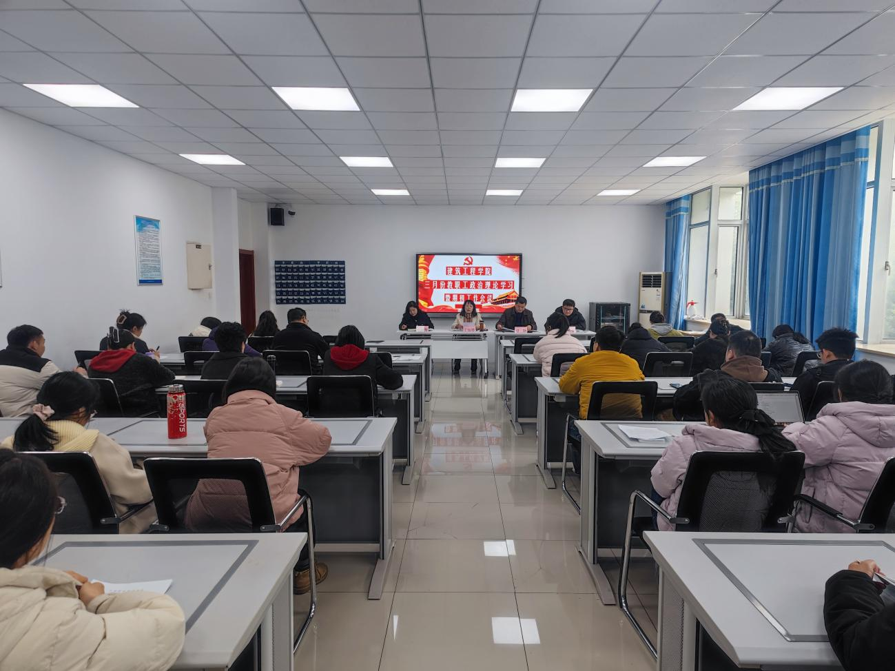 3月4日下午,建筑工程学院在建工楼304会议室召开三月份教职工政治理论学习暨期初工作会议,学院党政班子及全体教职工参会,会议由学院党总支副书记(主持工作)丁怡琴主持。