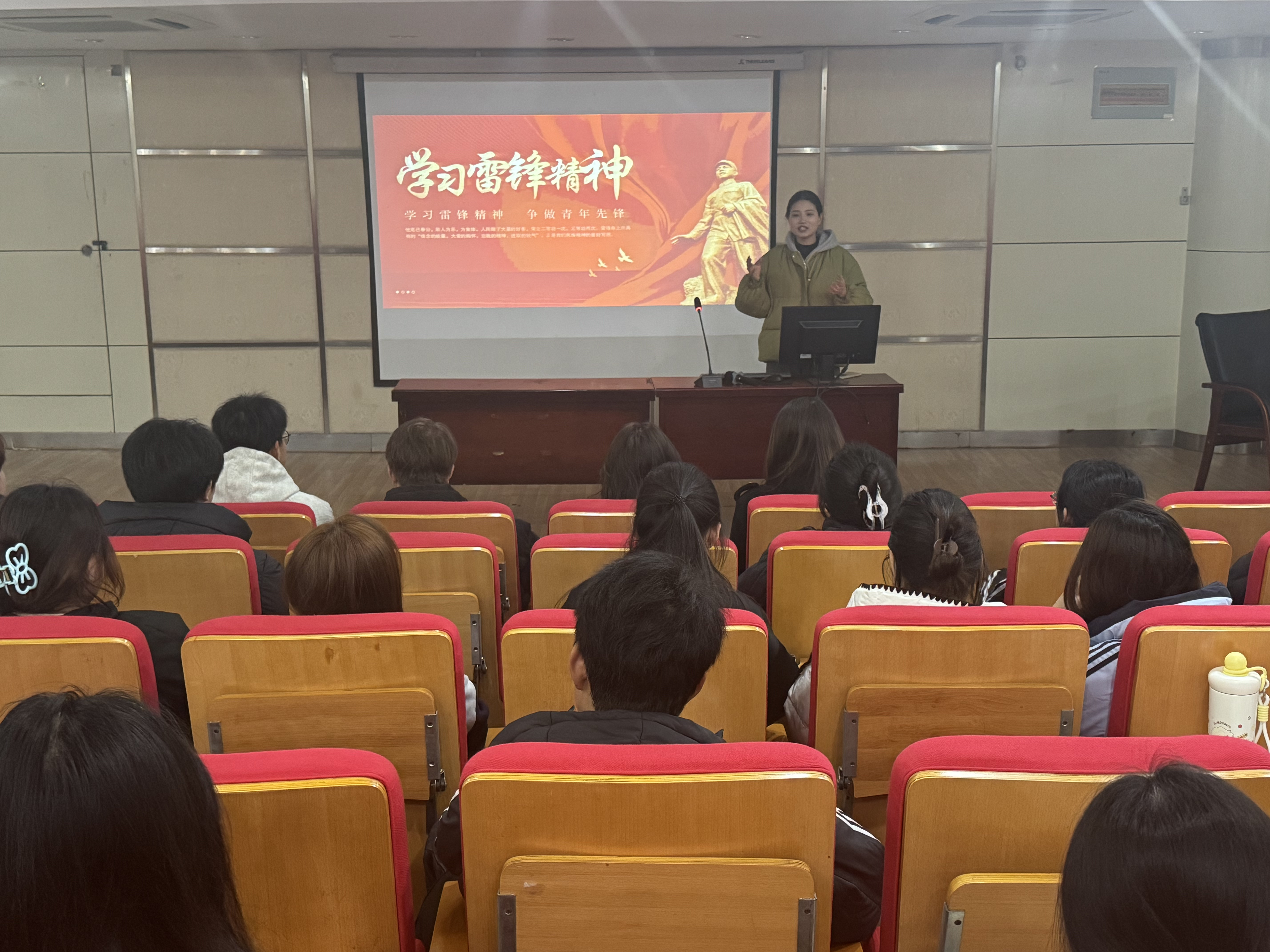 为传承雷锋精神,厚植青年团员理想信念,引导青年学子践行青春担当,3月5日下午6点,建筑工程学院团总支在鼓山校区图书馆一楼报告厅开展“学习雷锋精神”主题团课。学院团总支书记昌逸文主讲,24级、25级各班团支书及新发展团员参加,共同感悟雷锋精神的时代内涵,凝聚青春奋进力量。