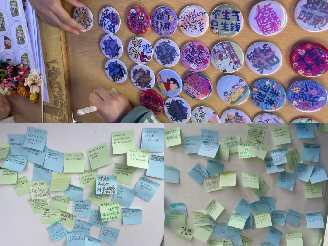完成好书推荐后,同学们凭便利贴即可参与徽章 DIY。在工作人员指导下,大家挑选心仪图案,裁剪、粘贴、组装,亲手制作专属徽章。现场欢声笑语不断,每一枚徽章都承载着独特心意,成为别具意义的纪念。